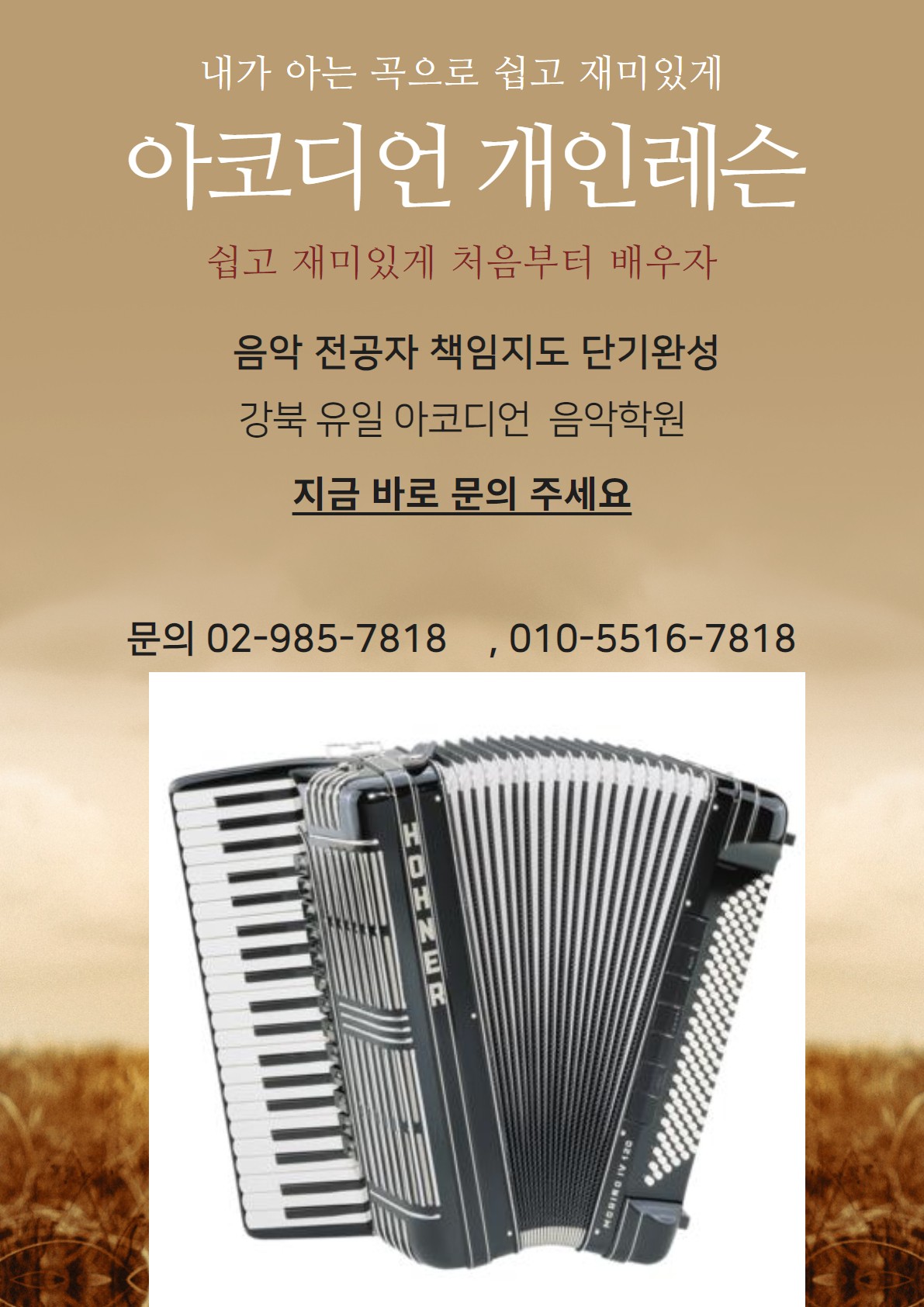강북유일 아코디언 개인레슨 음악학원 (악기가 없어도 OK! , 악보를 못봐도 OK!)