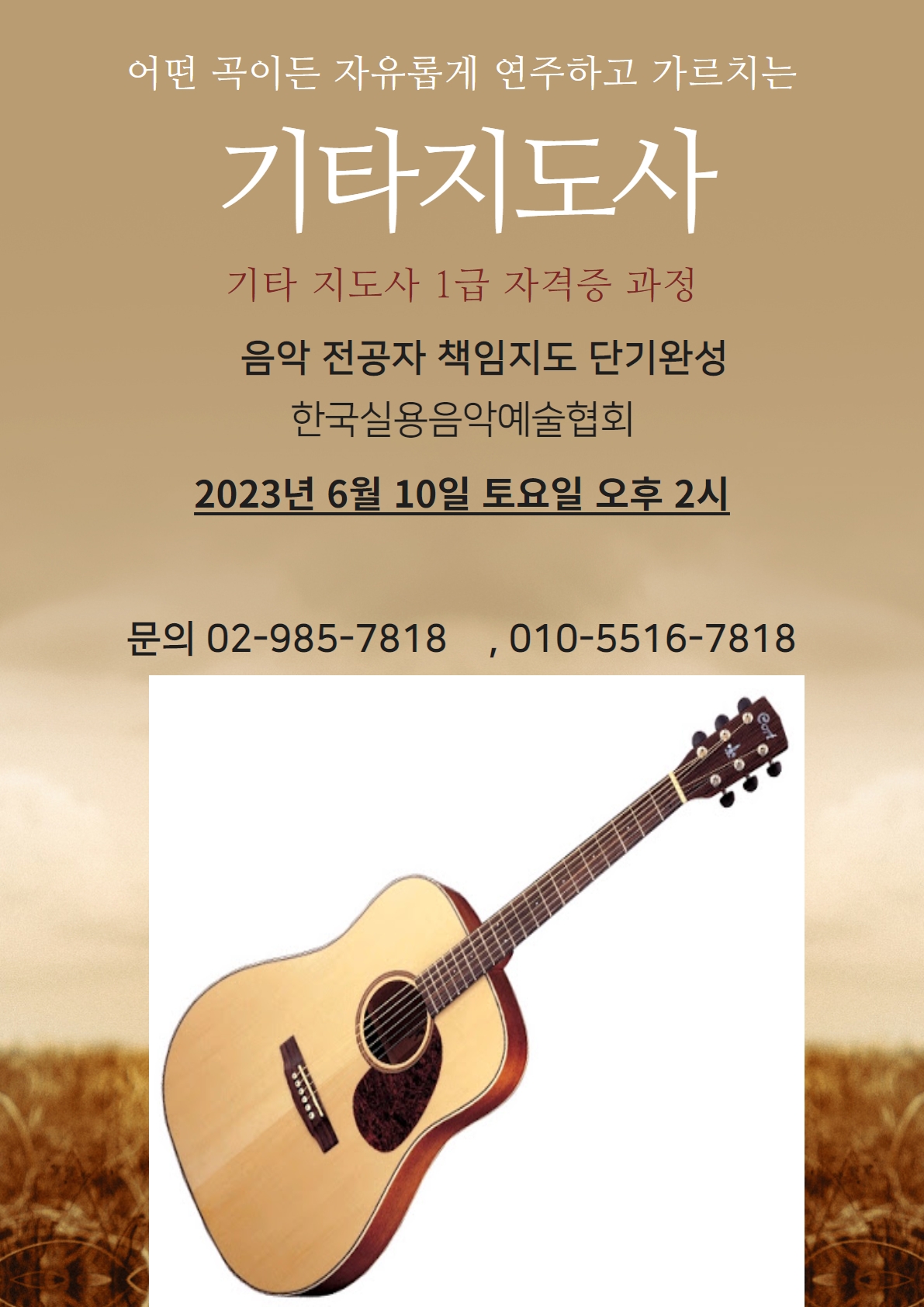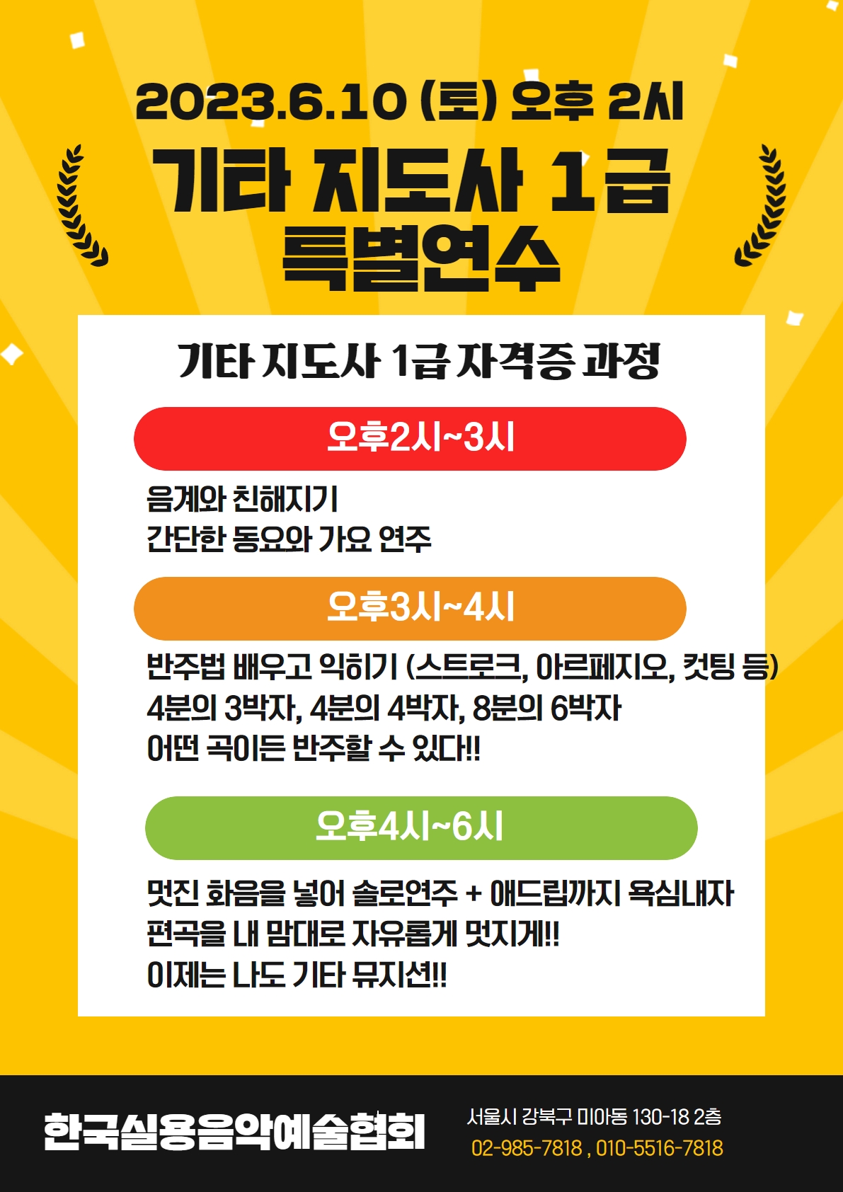 기타 지도사 과정 2급,1급 특별 연수를 다음과 같이 실시합니다