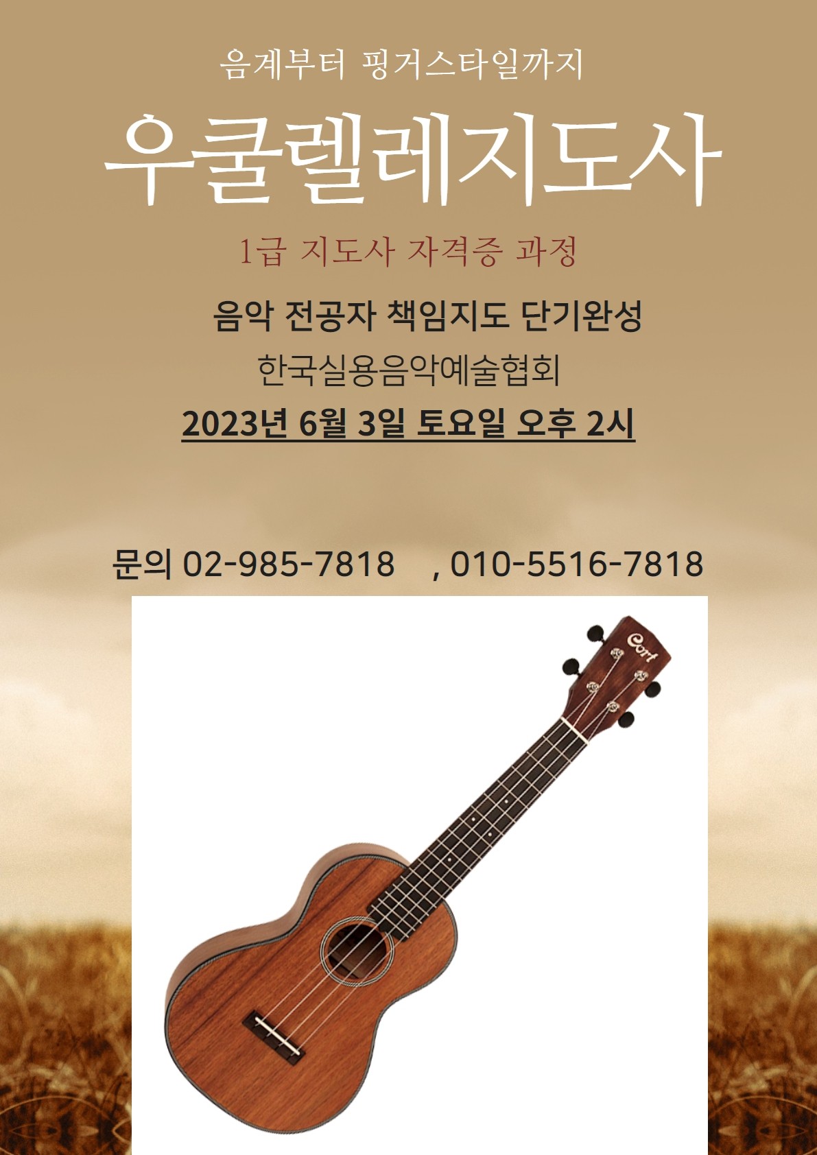 우쿨렐레지도사 1급 자격증 과정 개인레슨 특별연수 안내 (한국우쿨렐레지도사협회)