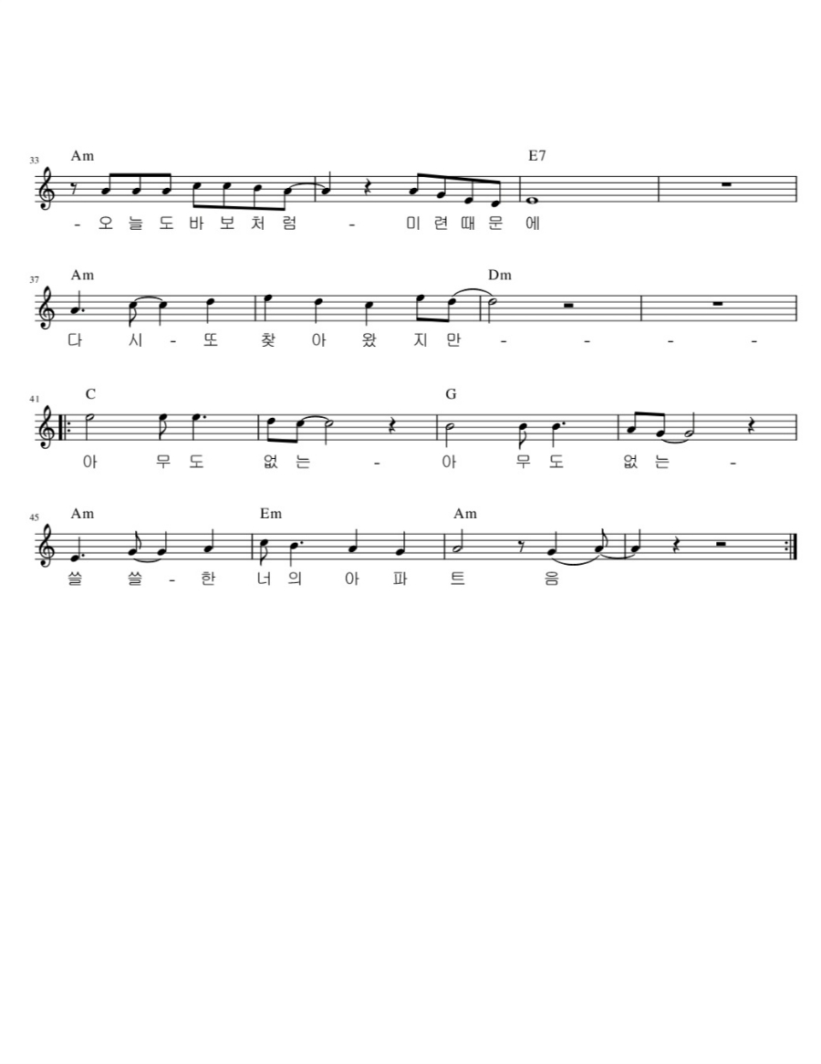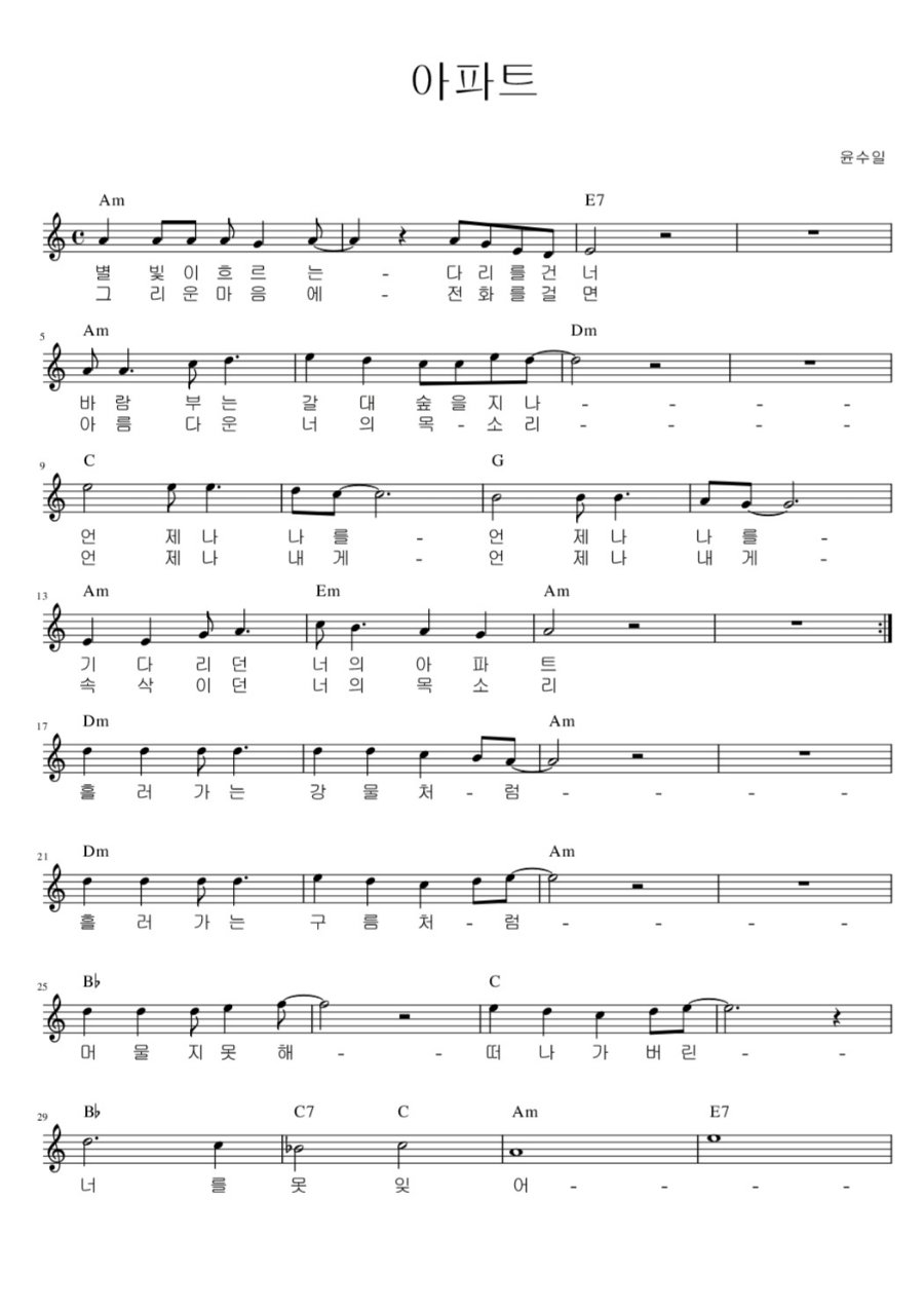 오늘은 윤수일님의 노래 아파트로 전자올겐 코드연주를 알려드리도록 하겠습니다.