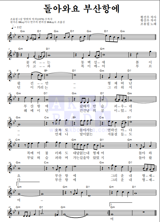 오늘은 조용필님의 [돌아와요 부산항에]를 마법코드로 연주해 보도록 하겠습니다.